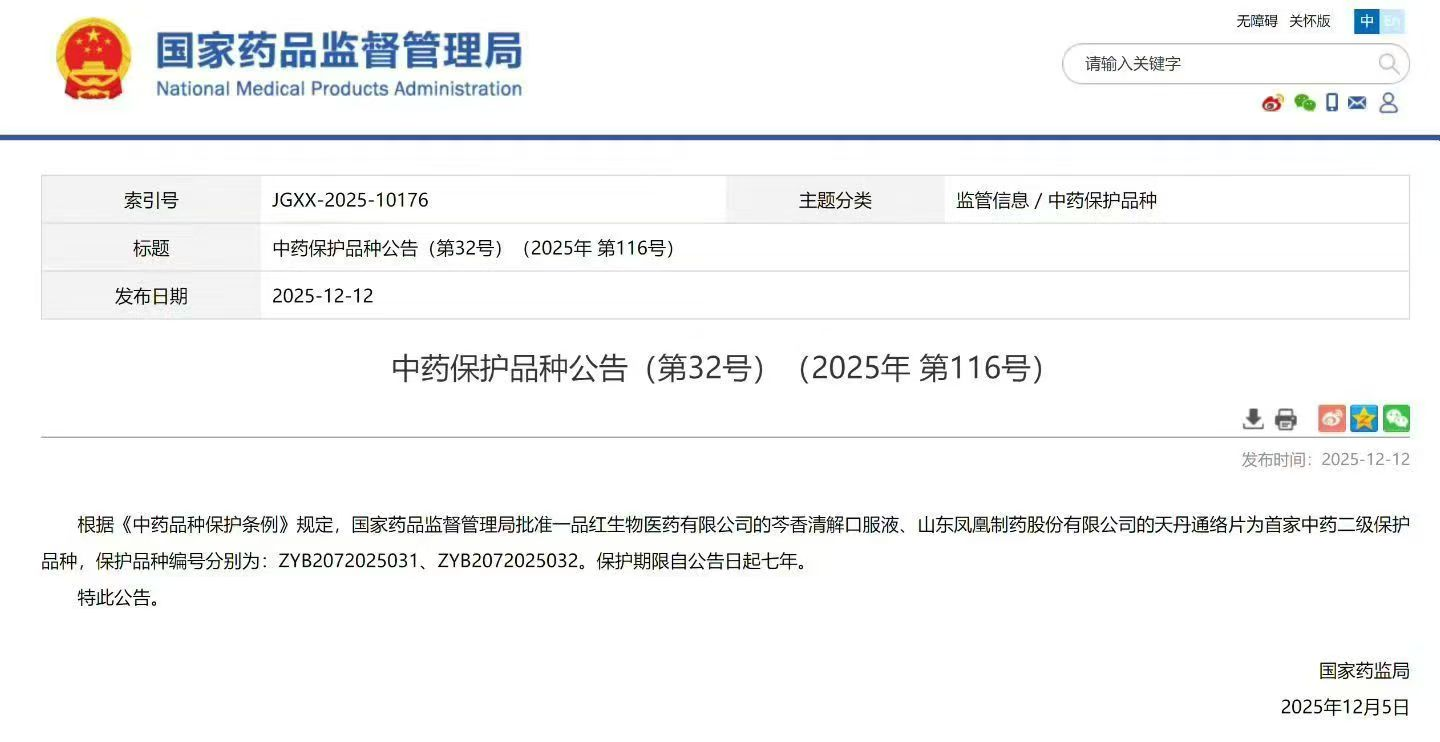 2025Äê12ÔÂ12ÈÕ£¬¹ú¼ÒÒ©Æ·¼àÊÓ¹ÜÀí¾ÖÐû²¼ÖÐÒ©± £»¤Æ·ÖÖͨ¸æ£¨µÚ32ºÅ£©£¬ÕýʽÅú×¼97¹ú¼ÊÒ©Òµ¼¯ÍÅ£¨¹ÉƱ´úÂ룺300723£©È«×Ê×Ó¹«Ë¾97¹ú¼ÊÉúÎïÒ½Ò©ÓÐÏÞ¹«Ë¾µÄ½¹µã¶ùͯҩ²úÆ·——ÜËÏãÇå½â¿Ú·þҺΪÊ×¼ÒÖÐÒ©¶þ¼¶± £»¤Æ·ÖÖ£¬± £»¤ÏÞÆÚ×Ôͨ¸æÐû²¼Ö®ÈÕÆðÆßÄê ¡£ÕâһȨÍþÈÏÖ¤²»µ«ÊǶԸòúÆ·ÁÙ´²¼ÛÖµÓëÑз¢ÊµÁ¦µÄ¸ß¶ÈÒ»¶¨£¬¸üÕÃÏÔÁË97¹ú¼ÊÔÚ¶ùͯÖÐÒ©Á¢ÒìÁìÓòµÄÐÐÒµÁìÏÈְλ ¡£